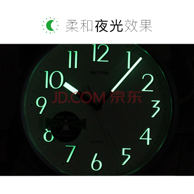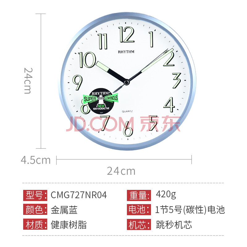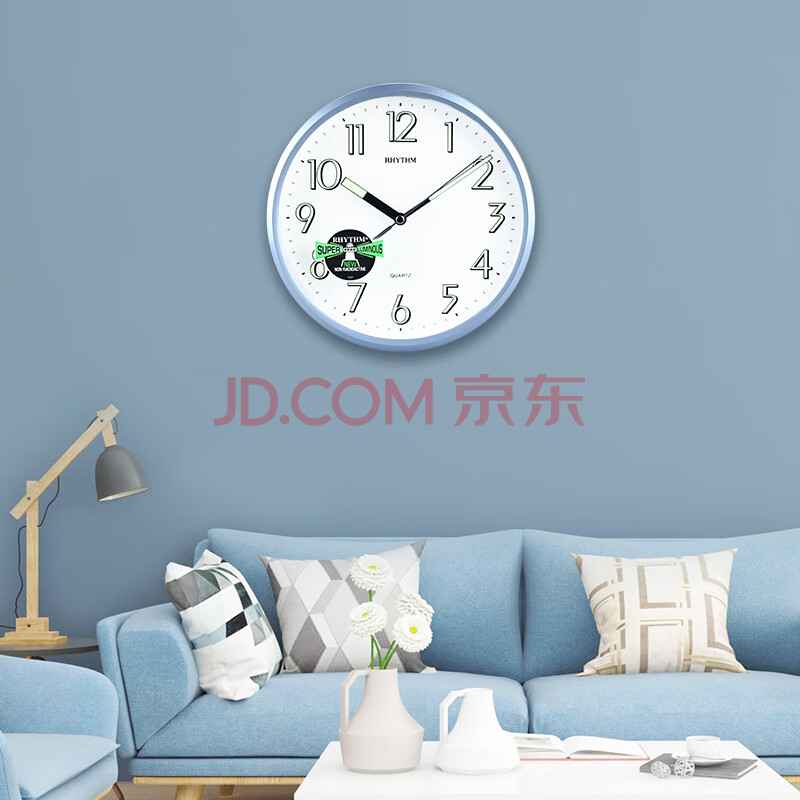 商品相册:丽声(RHYTHM)简约夜光客厅挂钟卧室时钟时尚钟表装饰表挂墙24cm蓝色CMG727NR04第