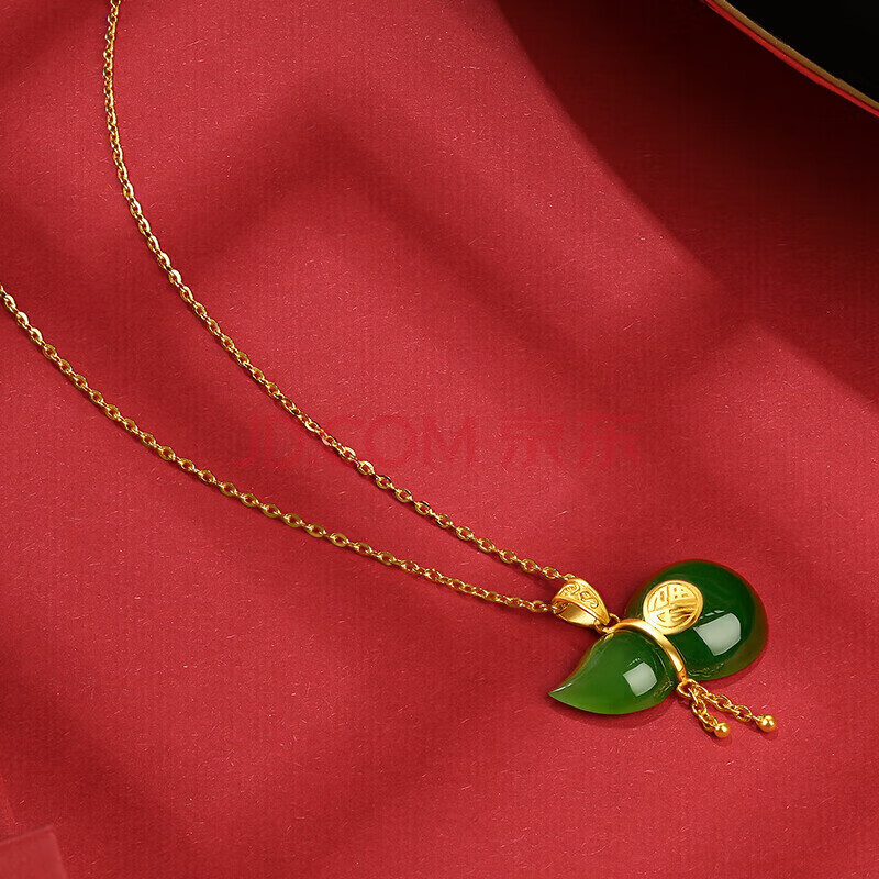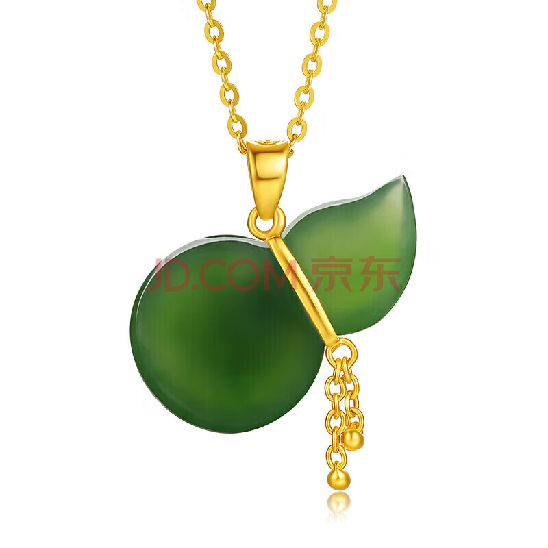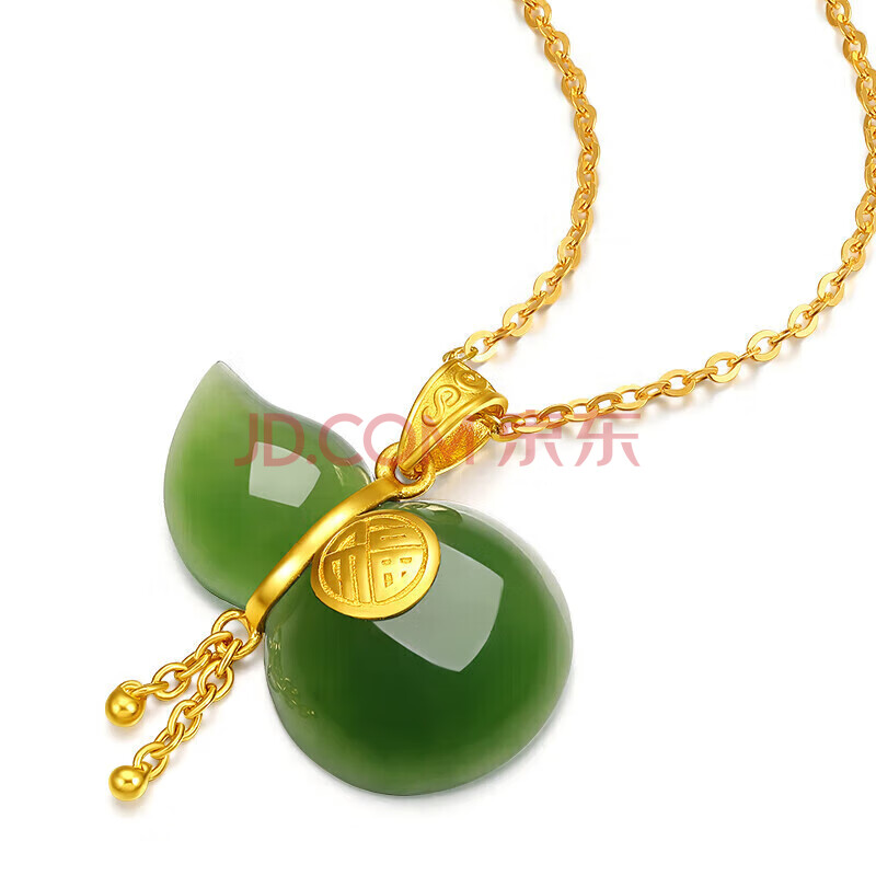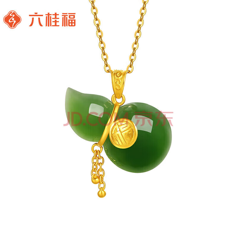 商品相册:六桂福珠宝 黄金吊坠 碧玉葫芦 足金镶玉项链 HT0600013 配银链 0.54g第