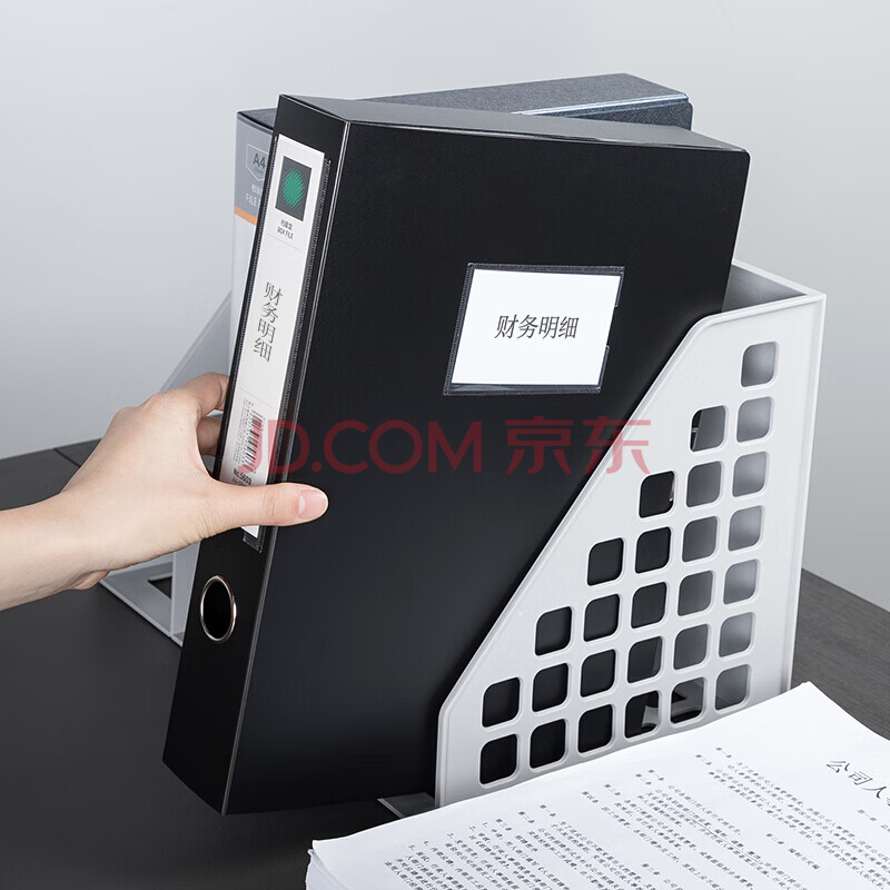 商品相册:得力(deli)5603档案盒55mmA4加厚档案盒塑料文件盒资料收纳 黑色 12只 【ZY】第