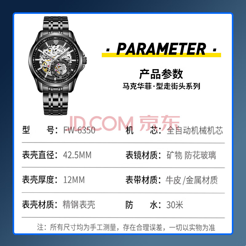 商品相册:马克华菲(MARK FAIRWHALE)手表男士镂空夜光全自动机械表飞轮腕表生日礼物送男友6350第