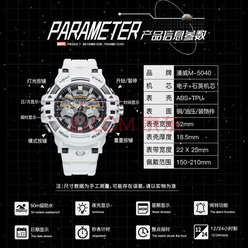 商品相册:漫威(Marvel)钢铁侠系列运动电子表多功能防水手表初高中学生儿童生日礼物开学第