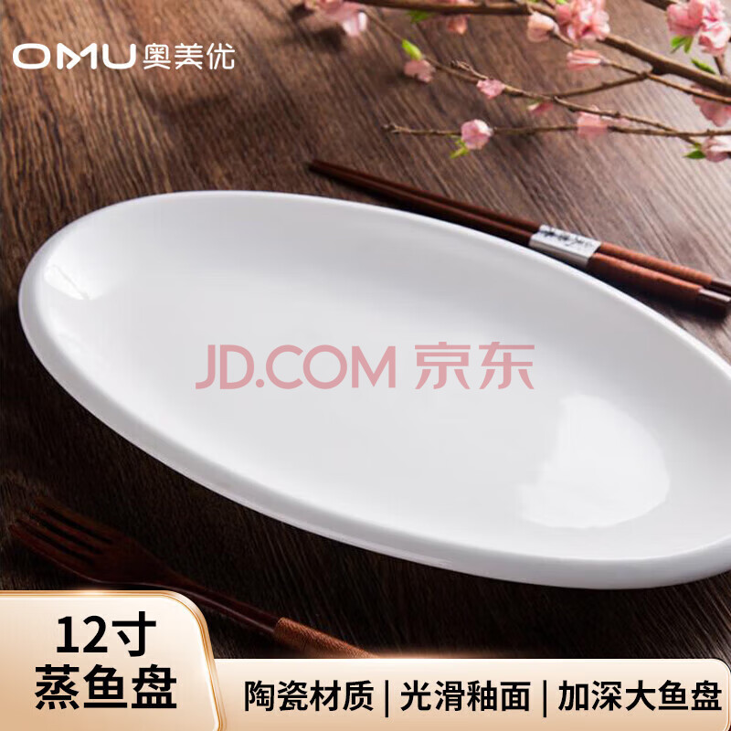 商品相册:奥美优蒸鱼盘 加深大鱼盘蒸鱼盘菜盘子易清洗纯白百搭陶瓷餐具第