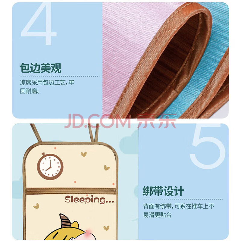 商品相册:艾薇 竹席冰丝席 婴儿车儿童安全座椅通用席 贪睡牛牛【双面可用】第1张/共3