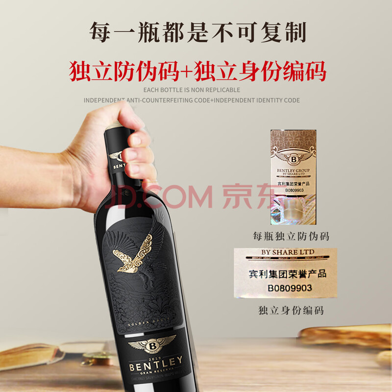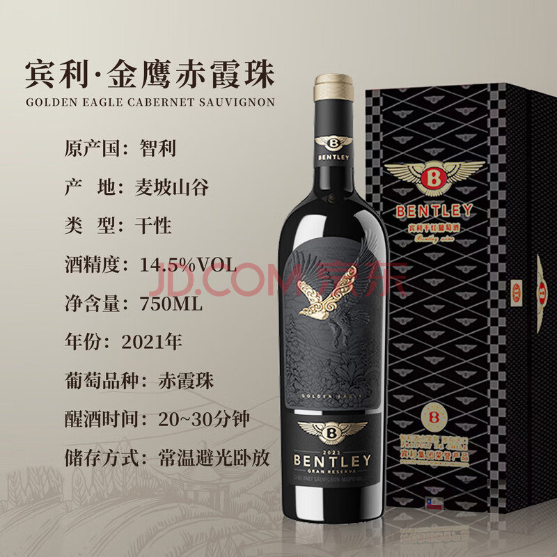 商品相册:宾利(BENTLEY)智利原瓶进口红酒礼盒特级珍藏赤霞珠干红葡萄酒750ml*1单瓶送礼第
