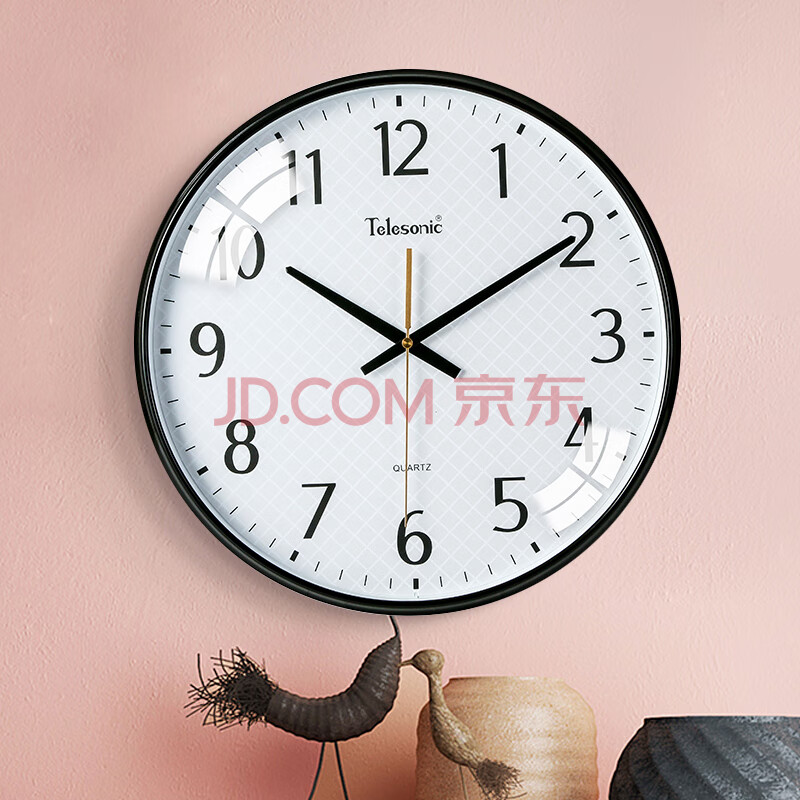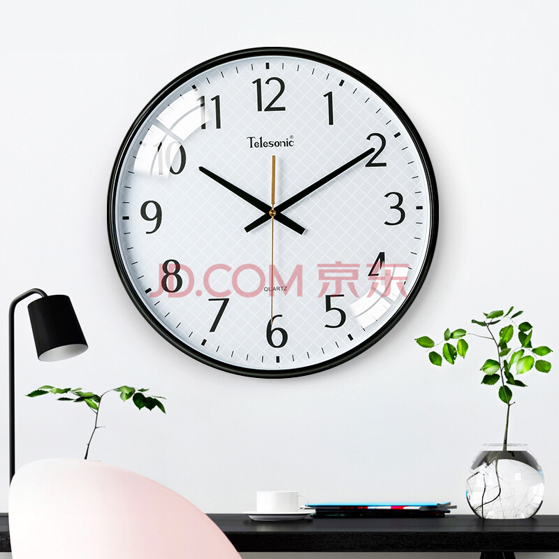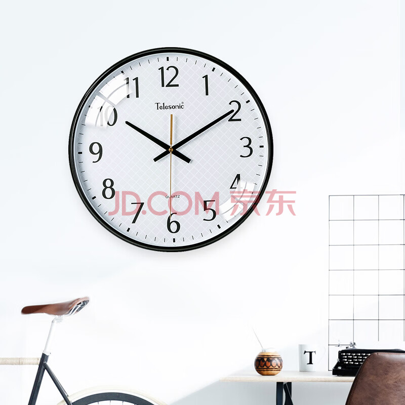 商品相册:天王星创意时尚简约钟表客厅时钟扫秒机芯挂钟 Q3644-3 黑色36cm第