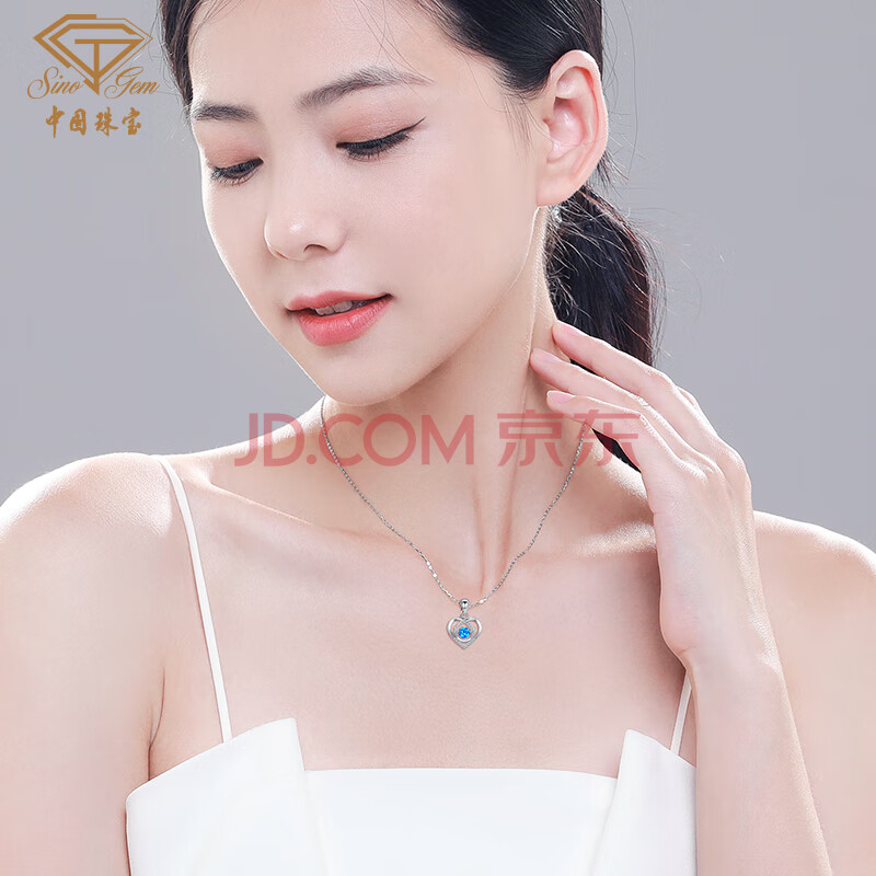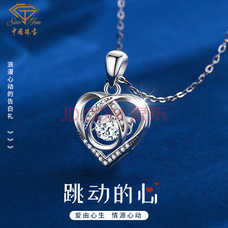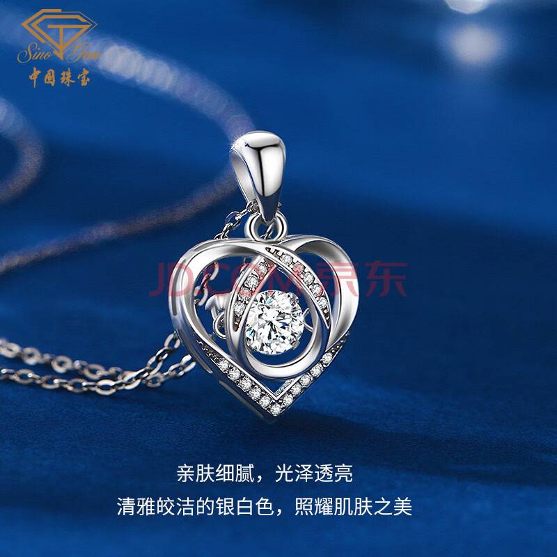 商品相册:中国珠宝生日礼物送女友 跳动的心银项链女锁骨链送女朋友第1张/共9