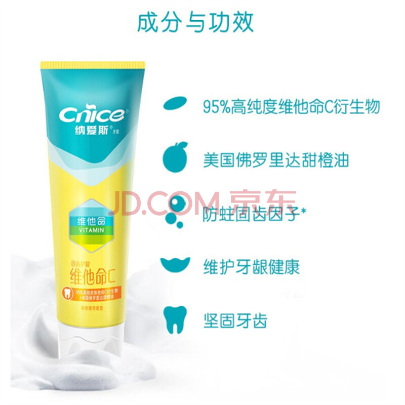 商品相册:纳爱斯 口腔护理 维他命C牙膏 鲜橙薄荷 165g/支 2支/件第