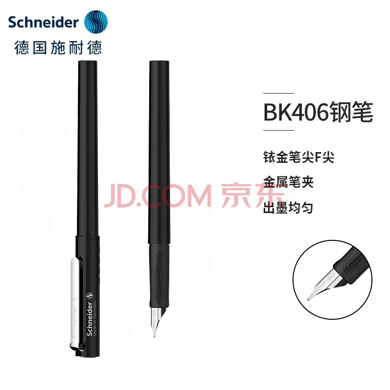 商品相册:施耐德(Schneider)钢笔学生成人直液式练字笔男女三四年级签字墨水笔F尖 开学必备用品BK406-黑色161811H第