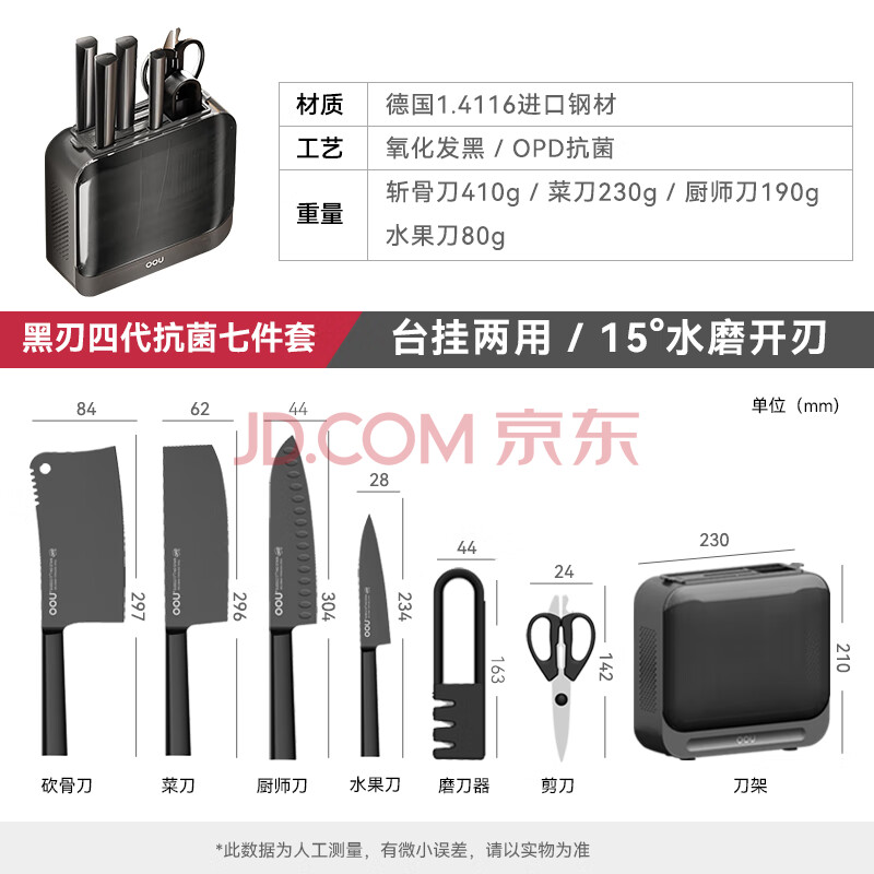 商品相册:OOU厨房菜刀刀具全套装德国材质抗菌家用水果刀剪刀磨刀器7件套 第