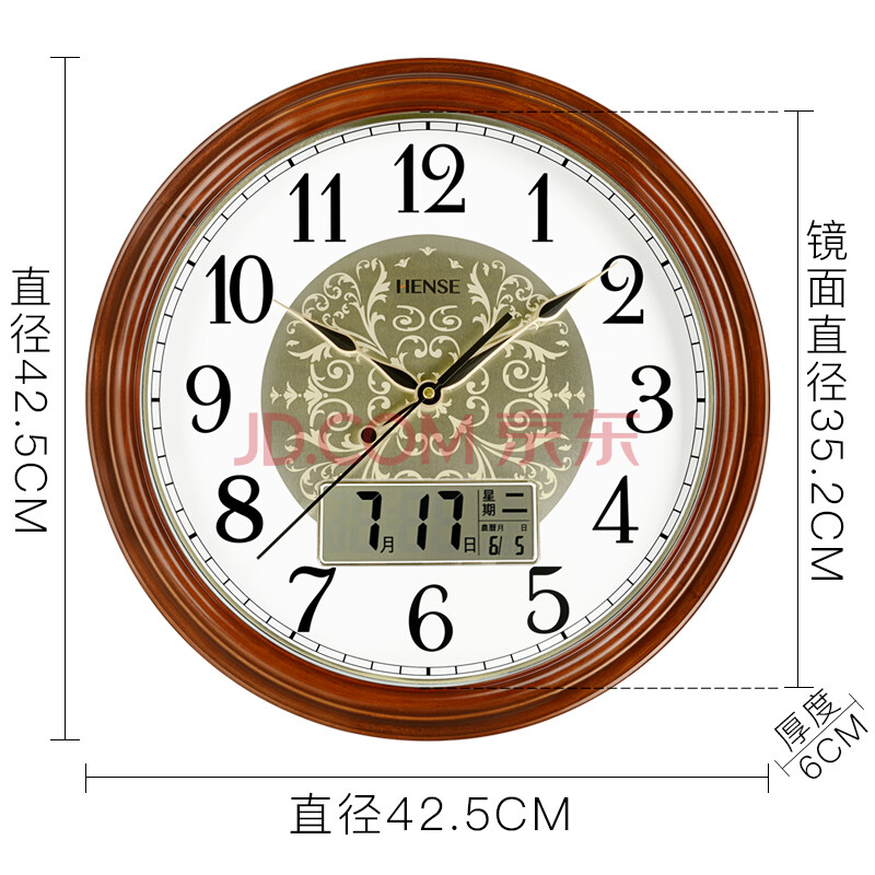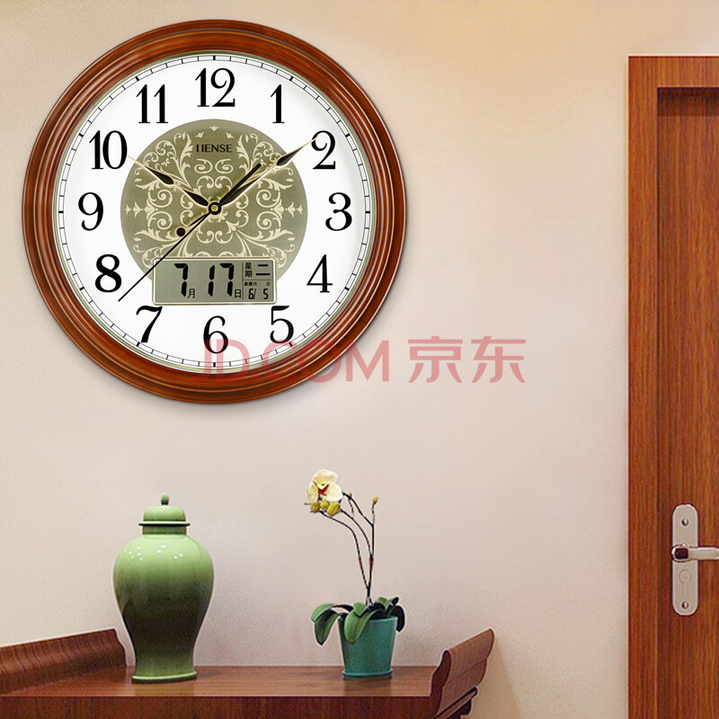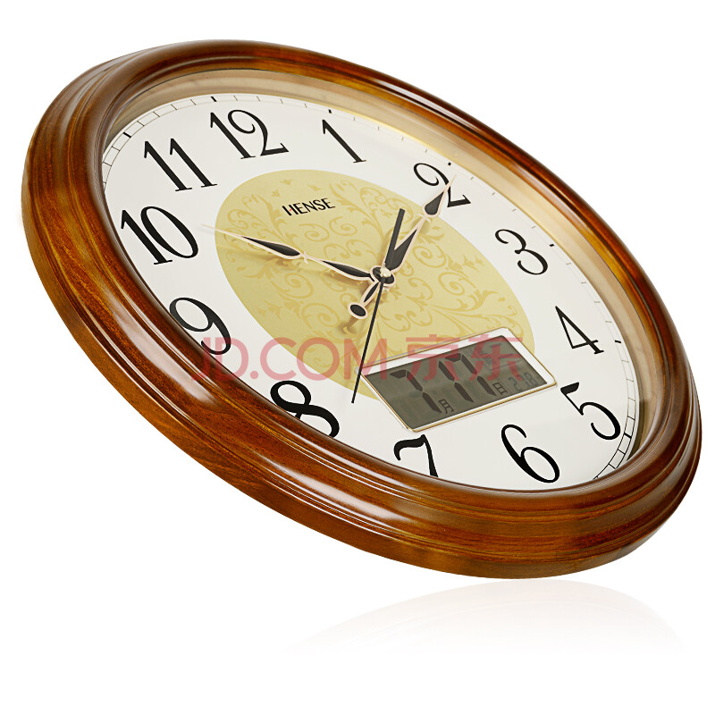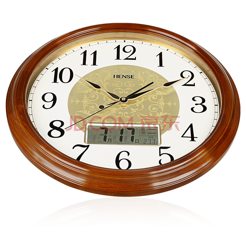 商品相册:汉时(Hense)创意实木挂钟客厅万年历时钟家用挂墙石英钟表HW92日历版42.5cm第