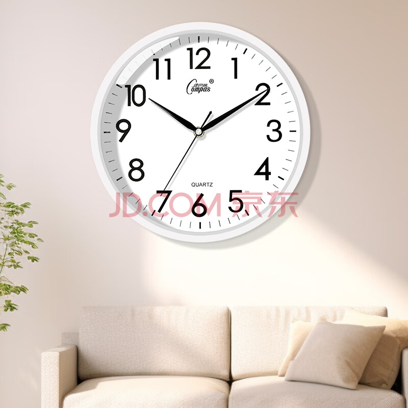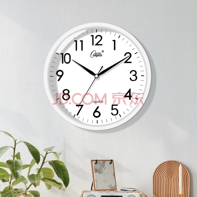 商品相册:康巴丝(Compas)挂钟客厅静音走时简约石英钟表挂墙时钟 c2855 白色 26cm直径第