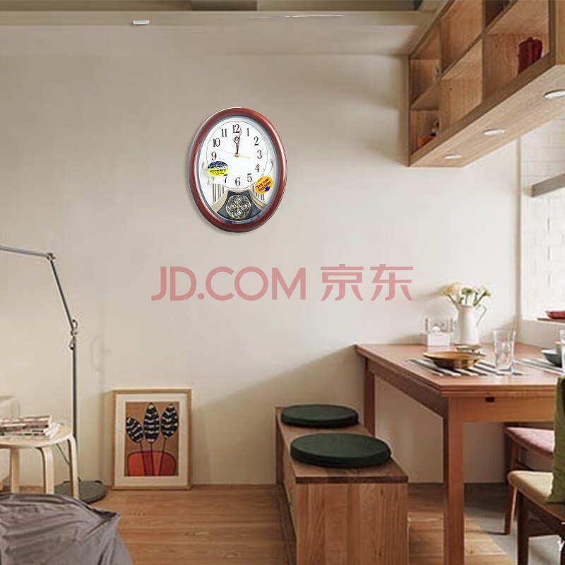 商品相册:丽声(RHYTHM)报时挂钟木质创意客厅表静音挂表家居装饰钟37.8cm 4MJ407WD06第