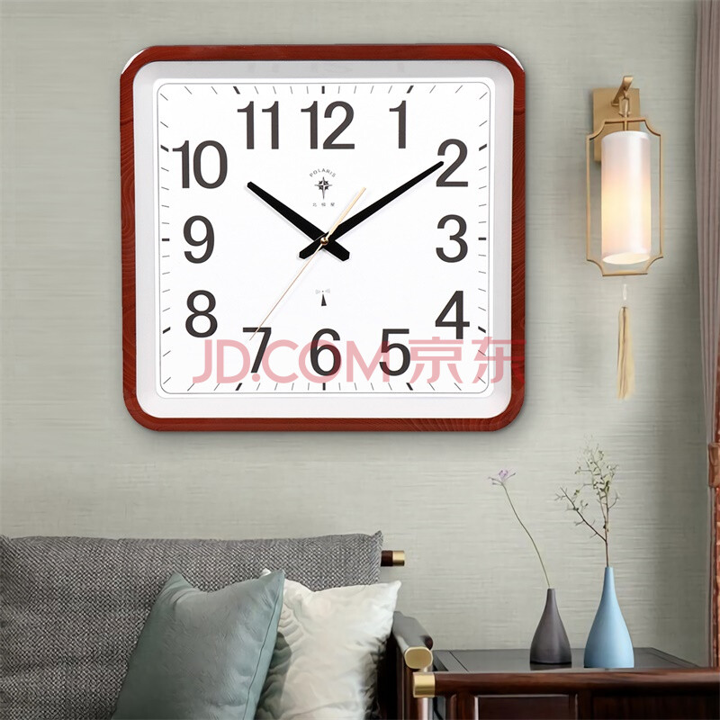 商品相册:北极星(POLARIS)挂钟 客厅时尚自动对时创意电波钟时钟智能钟表 7901木纹电波第