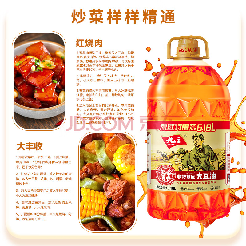 商品相册:九三 食用油 非转基因 三级6.18L大豆油 甄选好油 新老包装交替发货第1张/共6