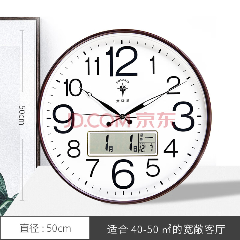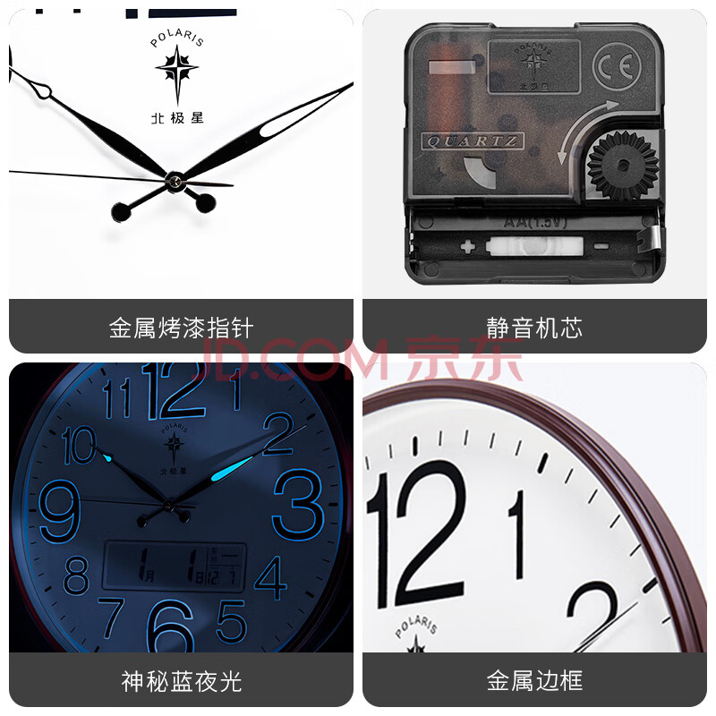 商品相册:北极星(POLARIS)挂钟 客厅创意石英钟表现代办公室日历壁钟夜光特色数字时钟50cm第