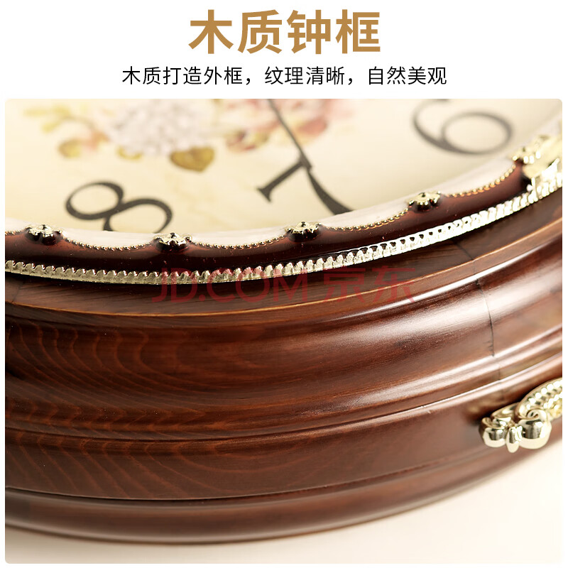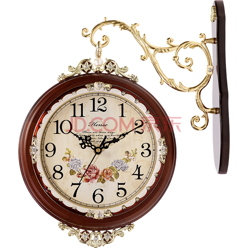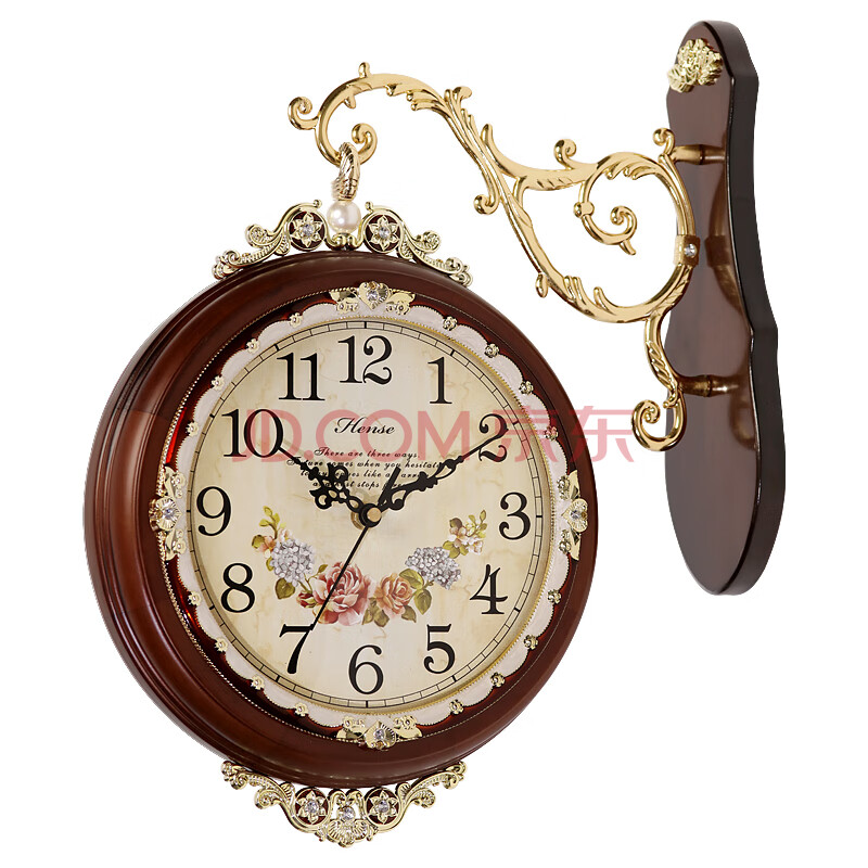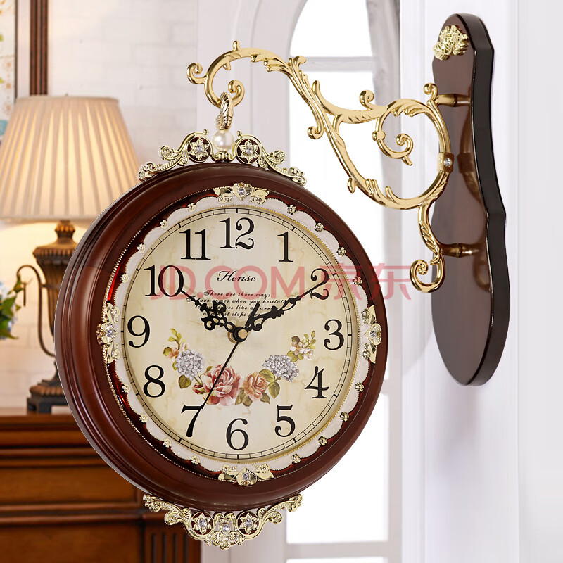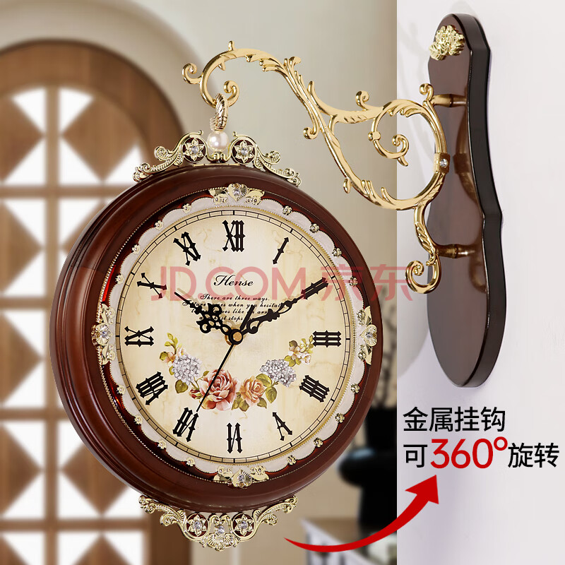 商品相册:汉时(Hense)双面挂钟客厅挂墙时钟创意装饰挂表轻奢石英钟表HDS01木色42cm第