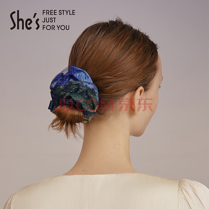 商品相册:She'sS茜子梵高星空印花布艺发圈时尚优雅头饰简约头花生日礼物送女友第