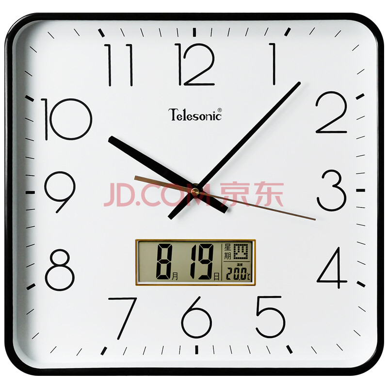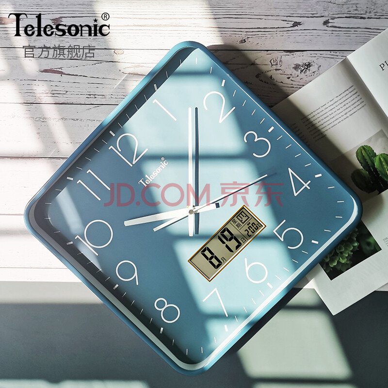商品相册:天王星(Telesonic)方形挂钟钟表客厅时钟万年历挂表石英钟简约日历卧室表挂墙33cm第