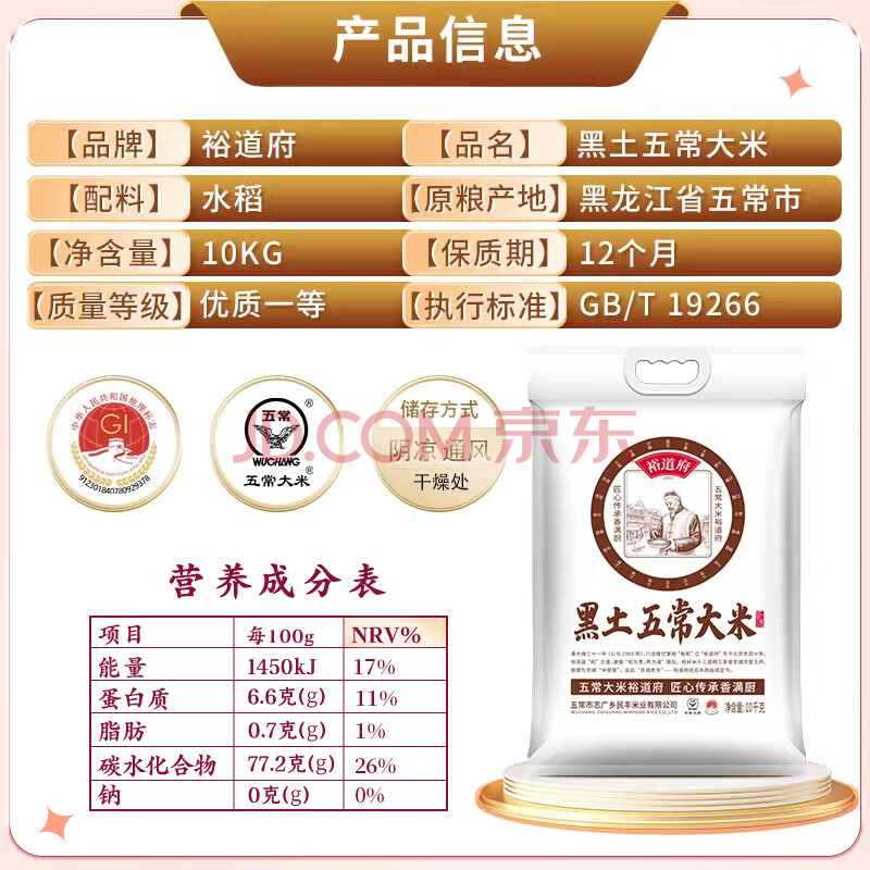 商品相册:裕道府当季新米 黑土五常大米 20斤装 东北大米 10kg 粳米第