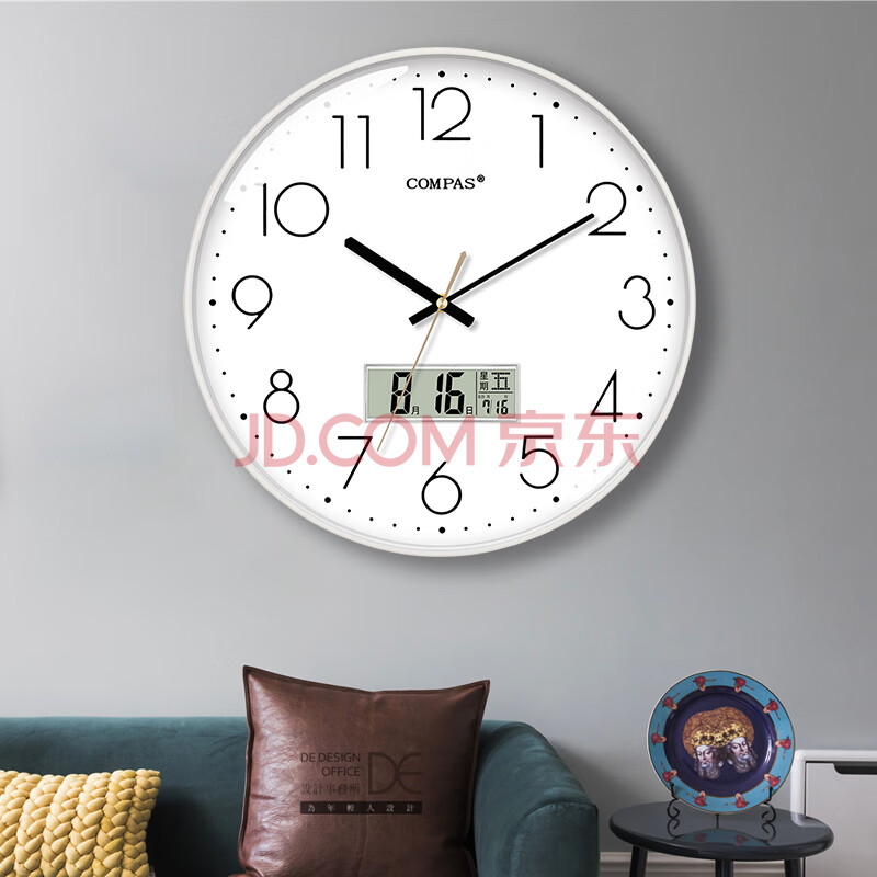 商品相册:康巴丝(Compas)电波钟自动对时静音挂钟教室客厅考场钟表挂墙 C6219AY纯洁白35cm第