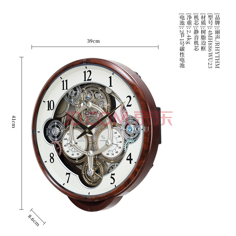 商品相册:丽声(RHYTHM)时钟客厅静音挂钟创意报时挂表时尚装饰表挂墙39cm 4MH886WU23第1张/共6