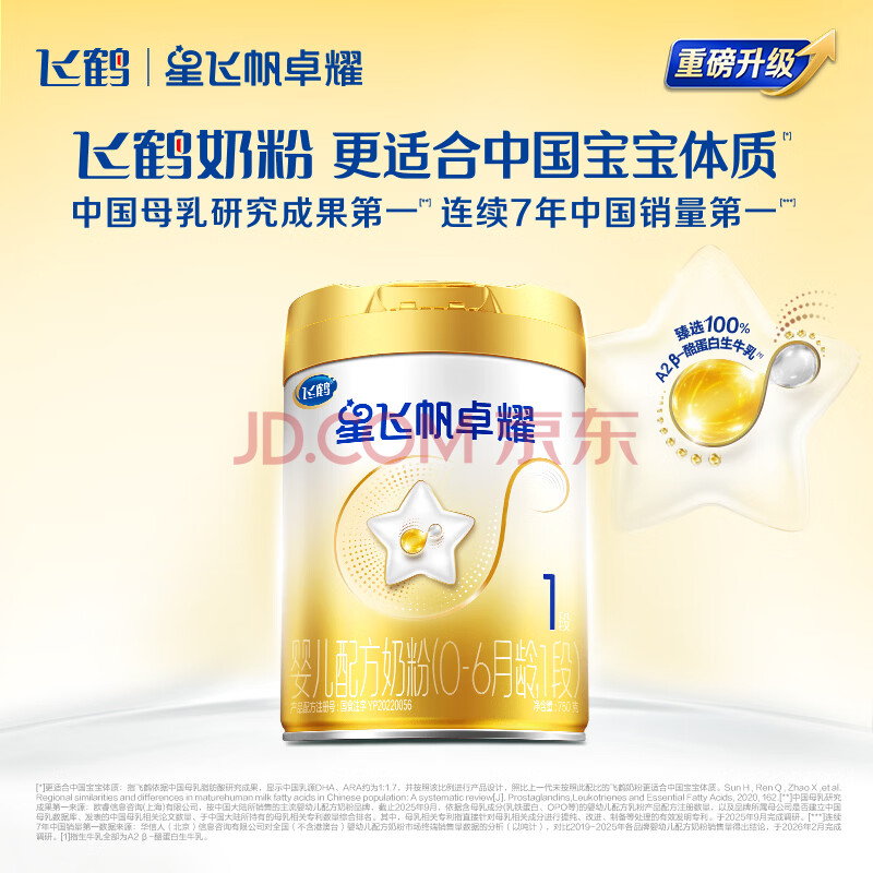 商品相册:飞鹤星飞帆卓耀 100%A2酪蛋白奶源 婴儿配方奶粉 1段(0-6月龄) 750g第
