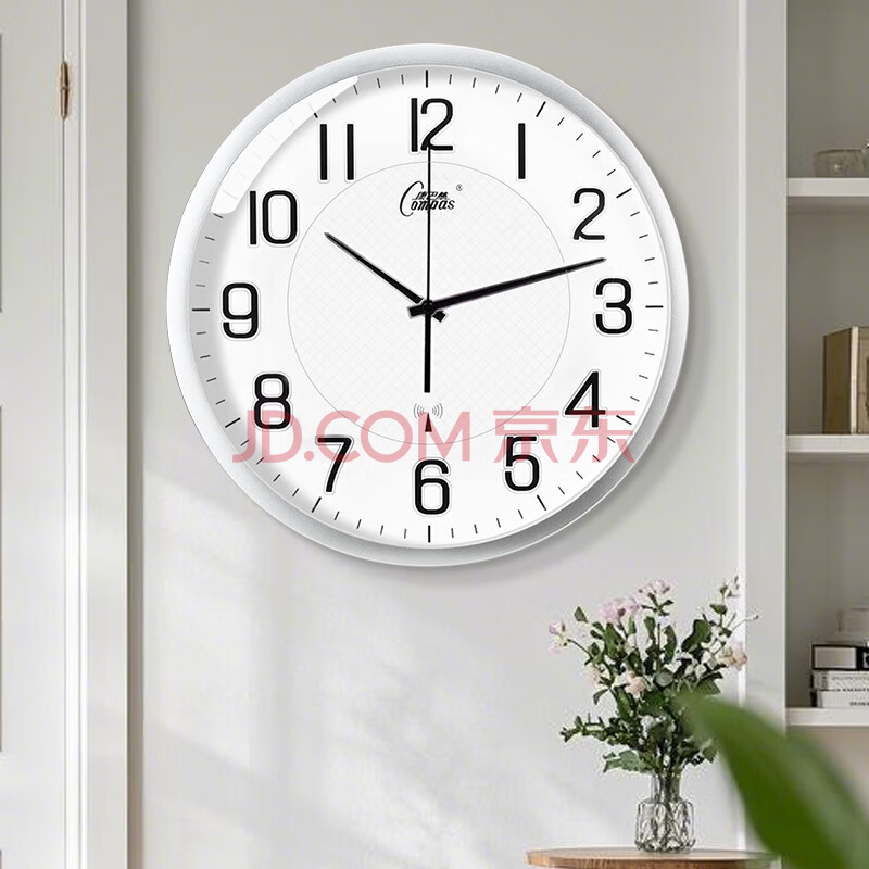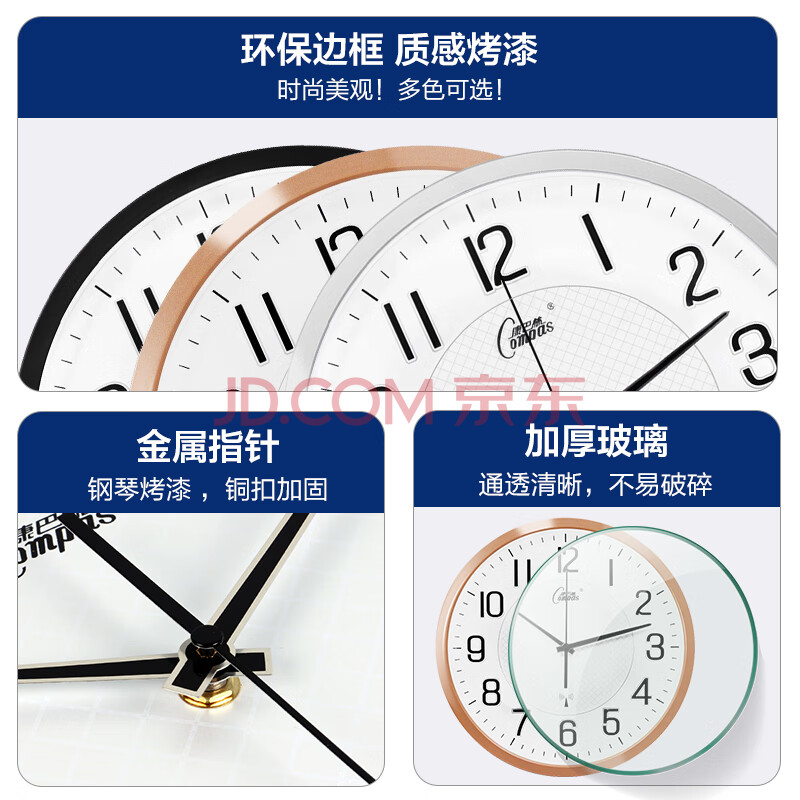 商品相册:康巴丝(Compas)挂钟自动对时电波钟客厅教室考场静音时钟表挂墙C6891 闪银 35cm第