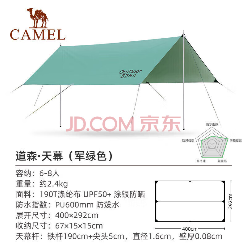 商品相册:骆驼(CAMEL)户外精致露营涂银天幕帐篷野餐防雨防晒加厚便携遮阳棚1J32263960第