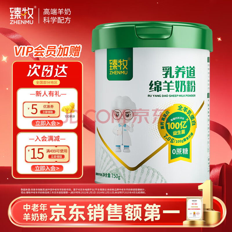 商品相册:臻牧羊奶粉成人中老年无蔗糖营养进口纯羊乳奶源益生菌高钙高蛋白750g第
