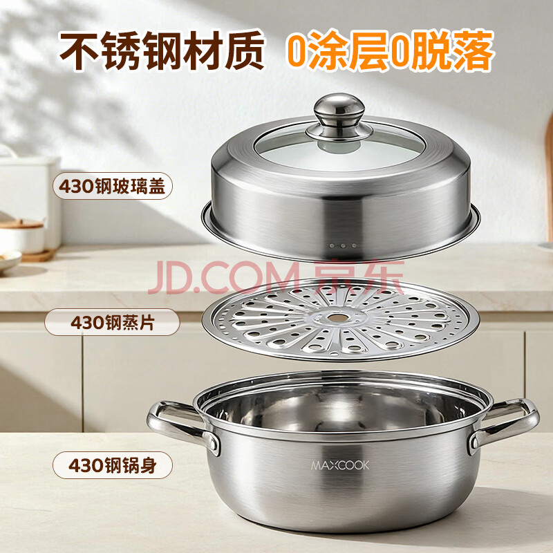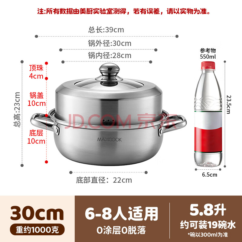 商品相册:美厨(maxcook)蒸锅 加厚不锈钢30CM单层蒸锅火锅汤蒸锅 燃气电磁炉通用第