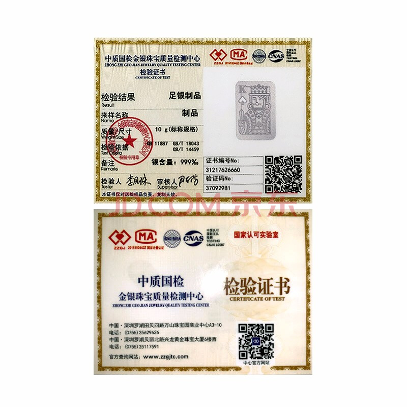 商品相册:天鑫洋足银999/银条 扑克牌K KING 10克 可以佩戴第