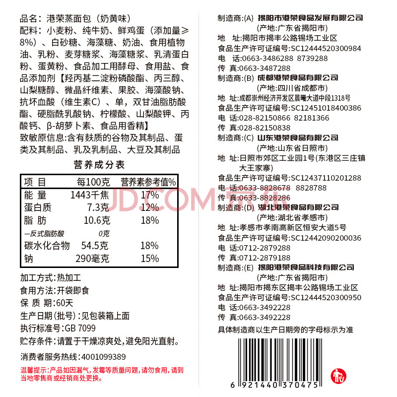 商品相册:港荣蒸面包奶黄800g手撕面包夹心早餐饼干零食西式糕点心甜品礼品盒物第