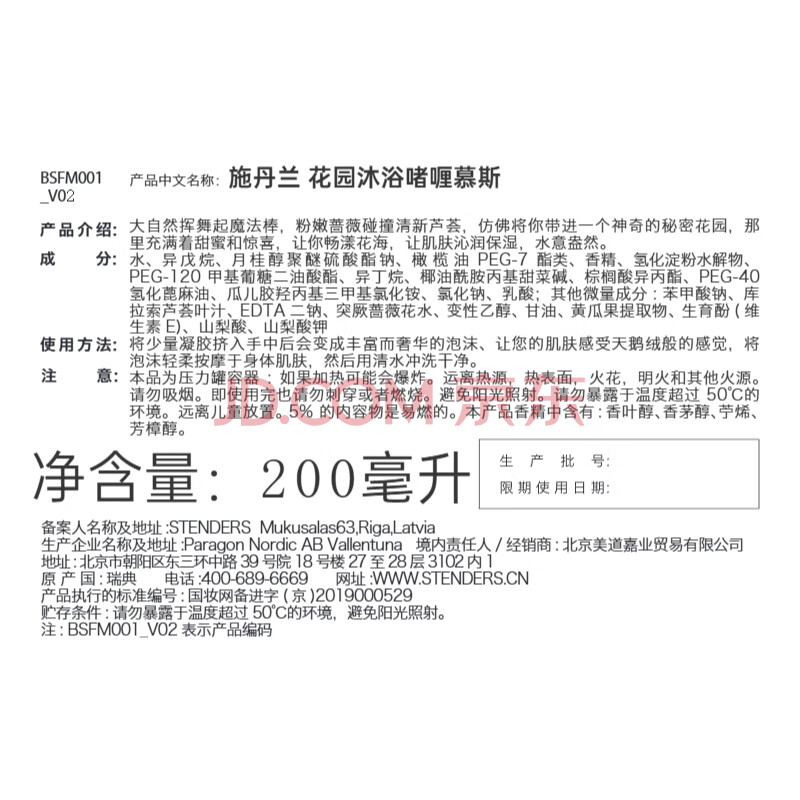 商品相册:施丹兰(STENDERS)花园啫喱慕斯200ml 沐浴啫喱慕斯自发泡沐浴露 男女友生日礼物第