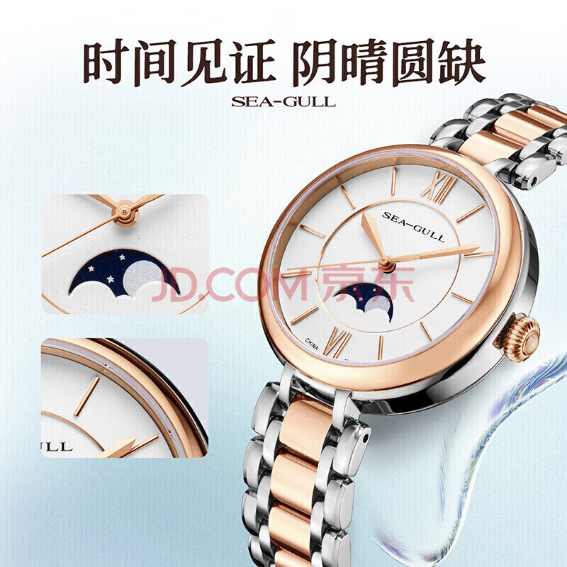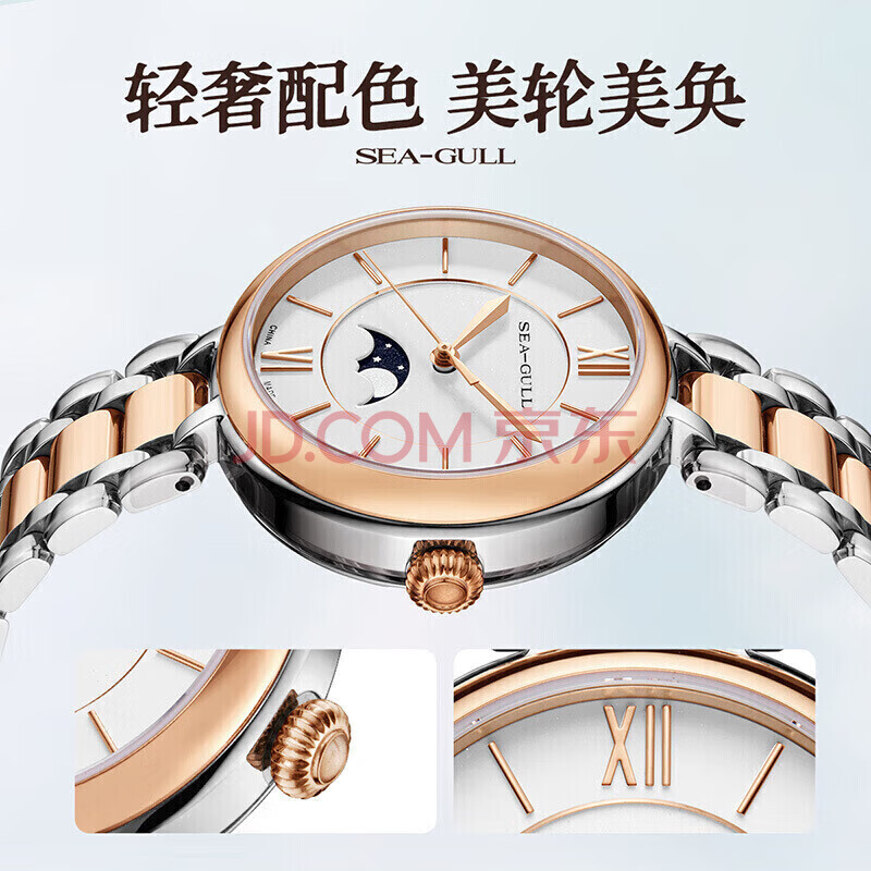 商品相册:海鸥(SEAGULL)手表女士自动机械表 月相女士手表 生日礼物女表礼盒217.17.6134L第
