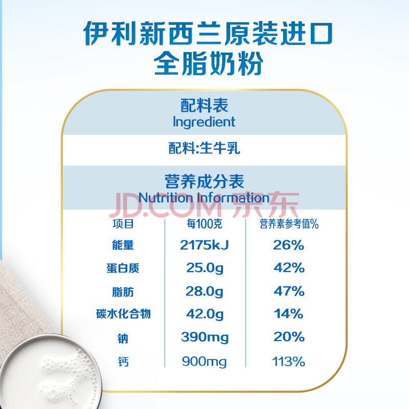 商品相册:伊利新西兰原装进口全脂奶粉 成人奶粉送礼 营养 原生高钙高蛋白 1kg第