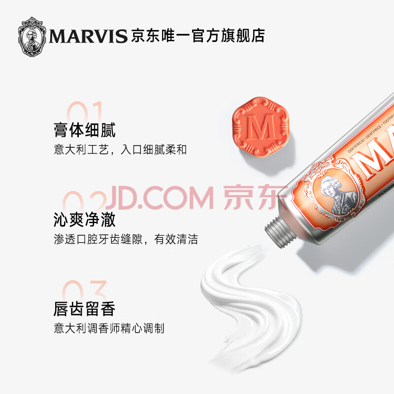 商品相册:MARVIS玛尔仕生姜薄荷牙膏85ml(橙)净澈皓齿新旧包装随机发货第