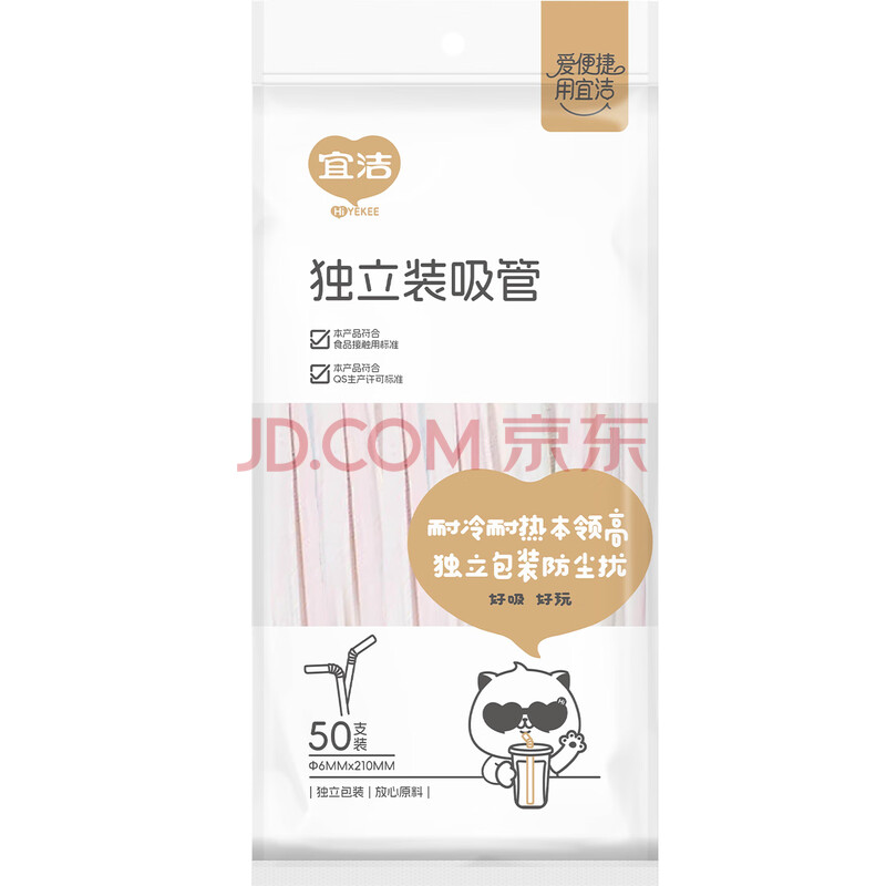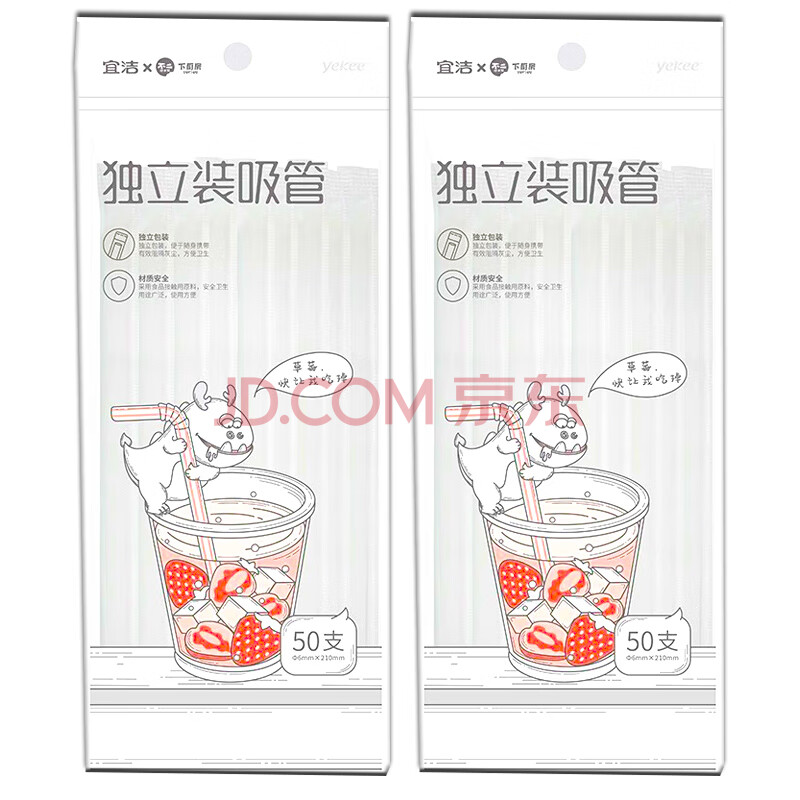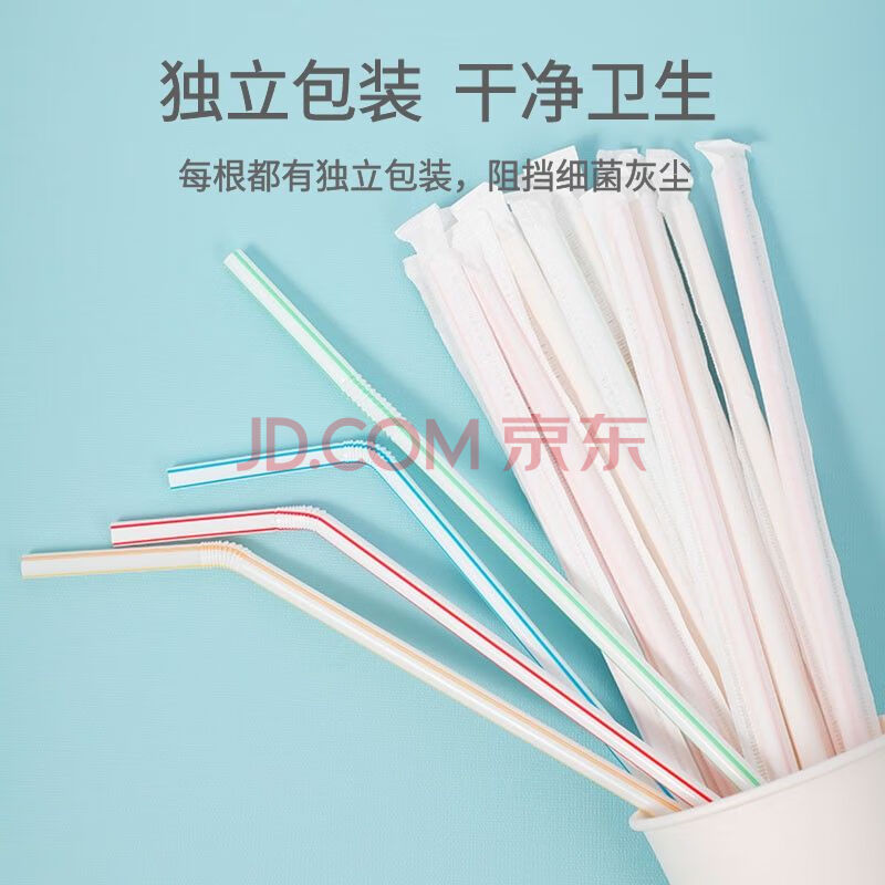 商品相册:宜洁(yekee) 吸管一次性卫生独立包装吸管100只装JD-8970第