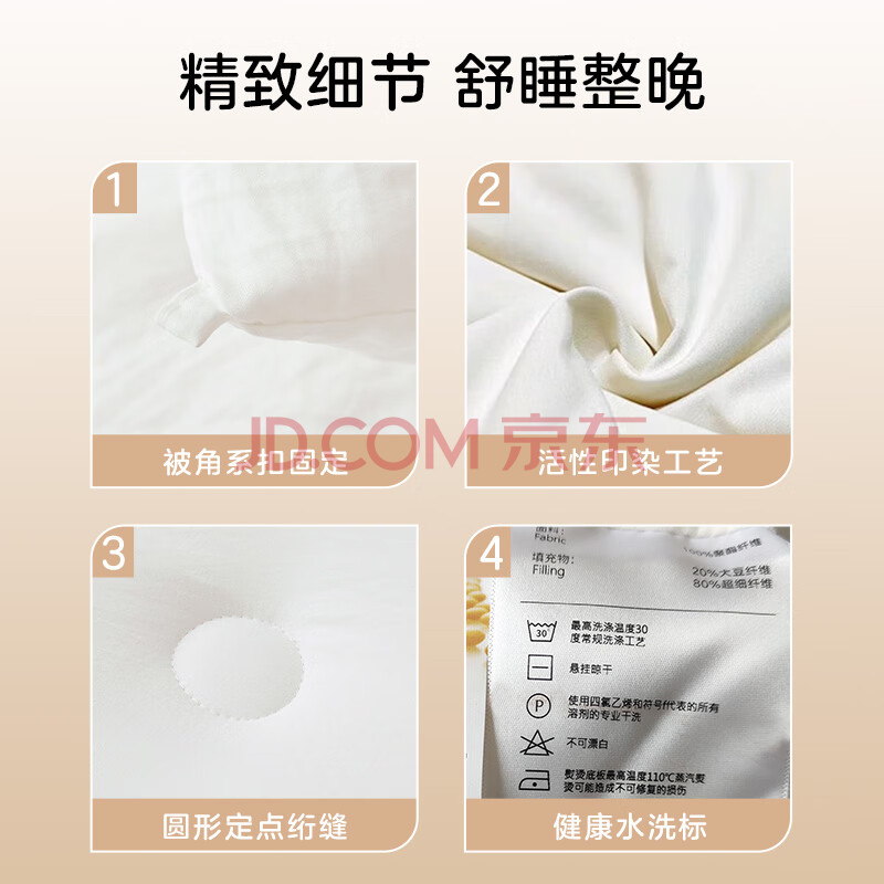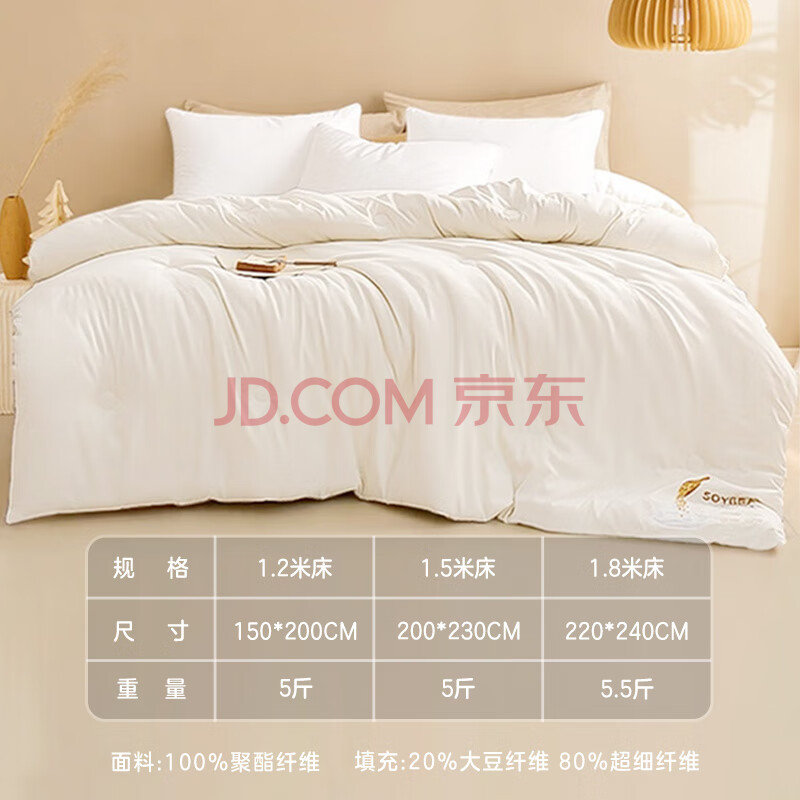 商品相册:然牌20%大豆纤维被芯A类春秋被子单人被子大豆被四季被5.5斤220x240cm第