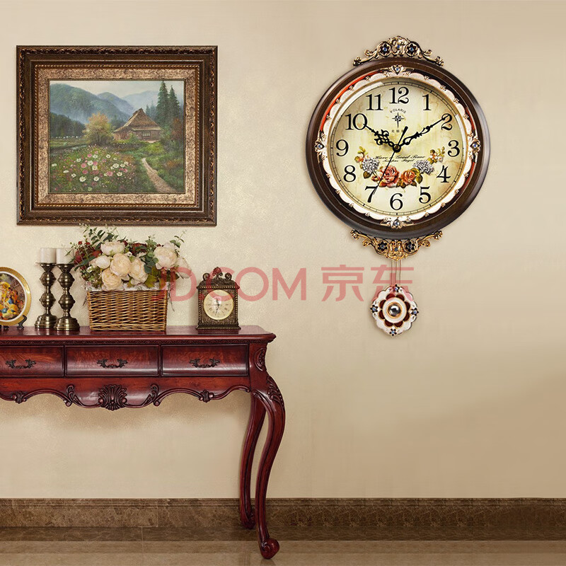 商品相册:北极星(POLARIS)挂钟创意时尚摆钟欧式田园仿古客厅石英钟表实木时钟挂表12英寸第