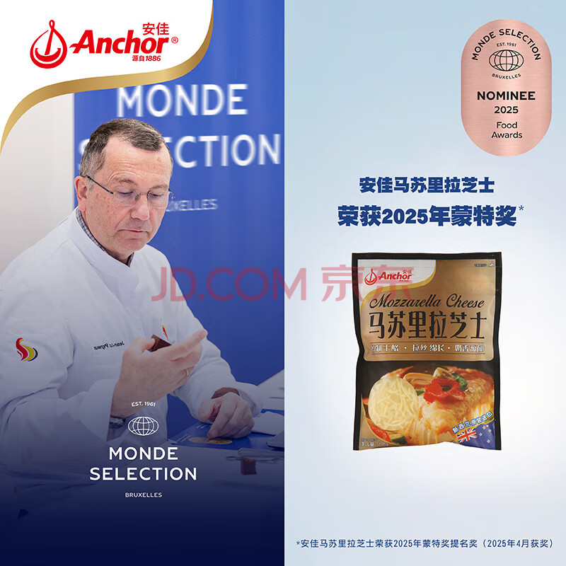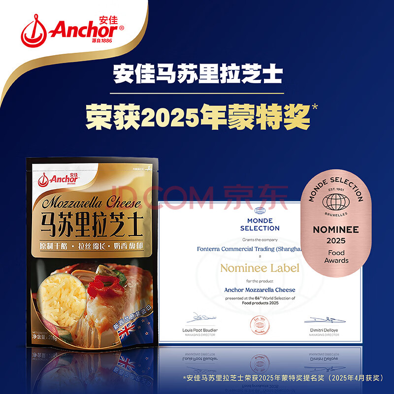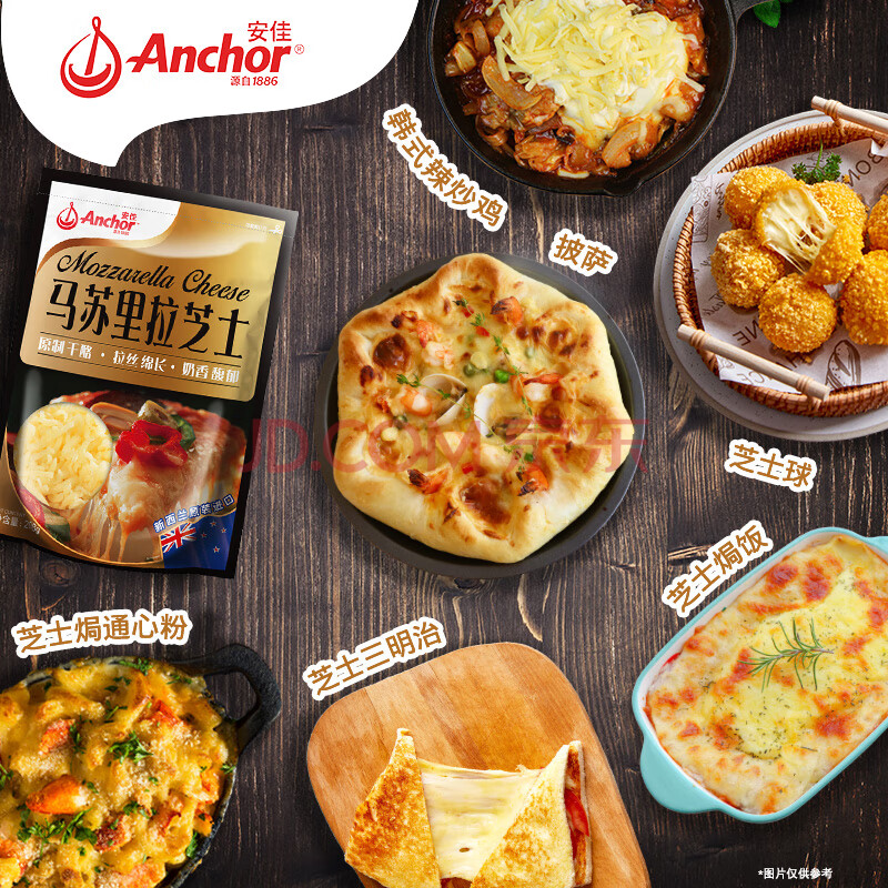 商品相册:安佳(Anchor)新西兰进口 原制马苏里拉芝士碎208g 烘焙披萨焗饭意面第1张/共7