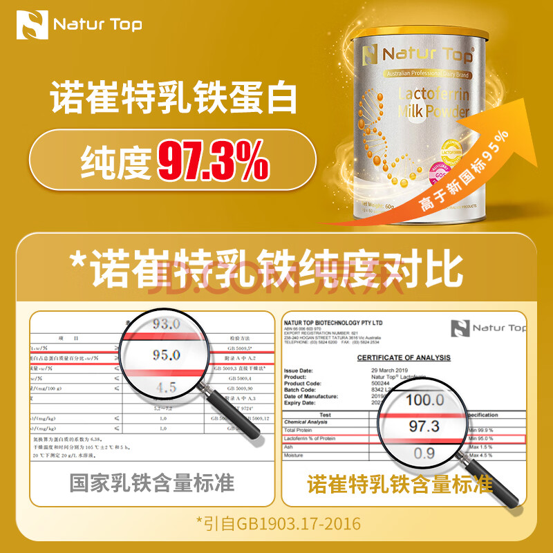 商品相册:Natur Top诺崔特【澳洲原装进口】乳铁蛋白奶粉学生成人双益生元60g*1罐第