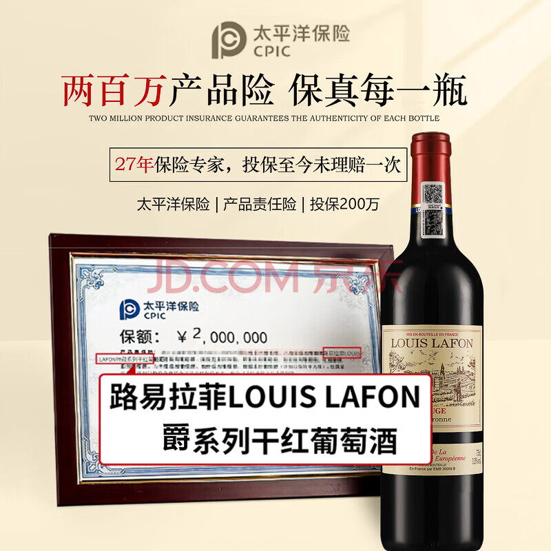 商品相册:路易拉菲(LOUIS LAFON)法国原瓶进口红酒歌海娜丹魄13度干红葡萄酒750ml*6瓶整箱送礼第