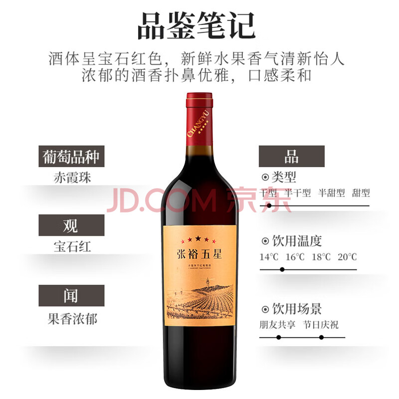商品相册:张裕五星金奖赤霞珠干红葡萄酒 750ml*6瓶整箱装 国产红酒第