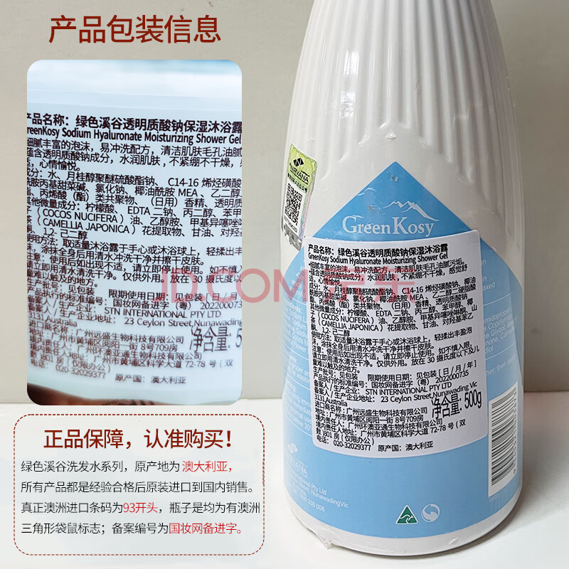 商品相册:绿色溪谷沐浴露玻尿酸滋润保湿沐浴液500g舒缓持久留香沐浴乳澳洲进口第