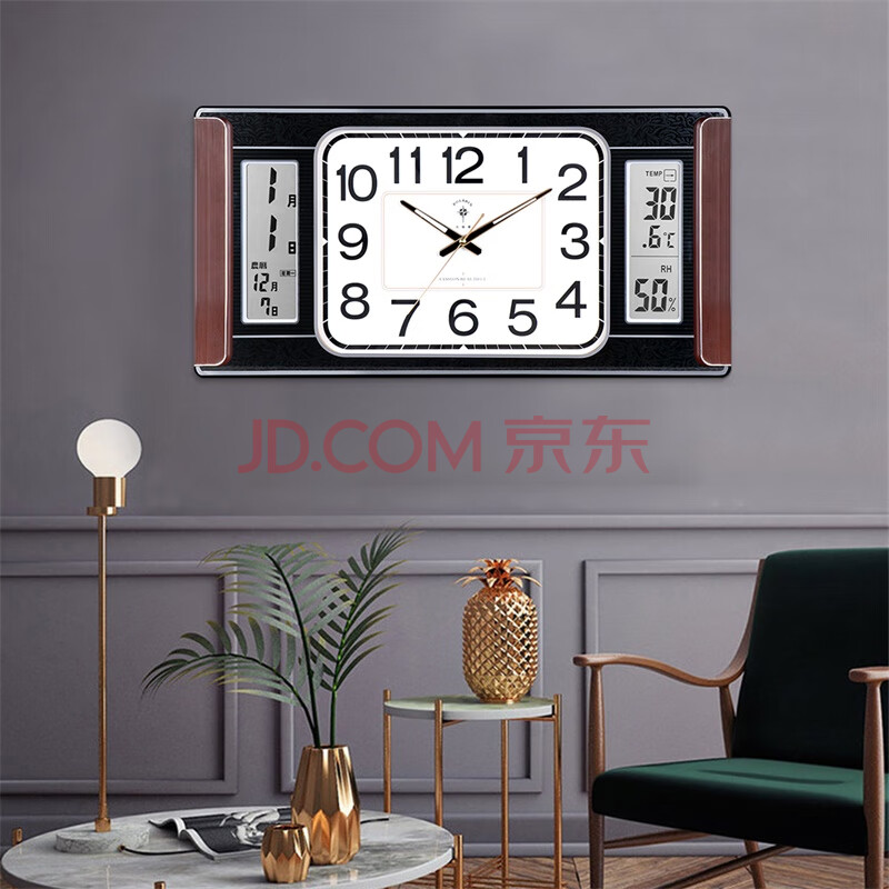 商品相册:北极星(POLARIS)挂钟客厅创意时钟卧室夜光钟表温度双液显钟24英寸大时钟第