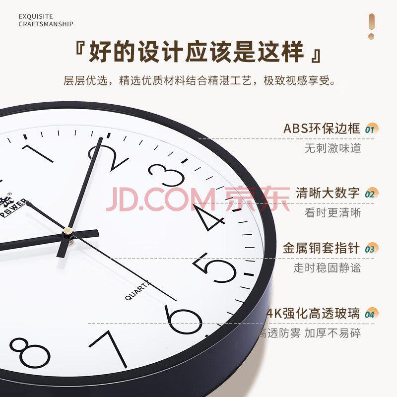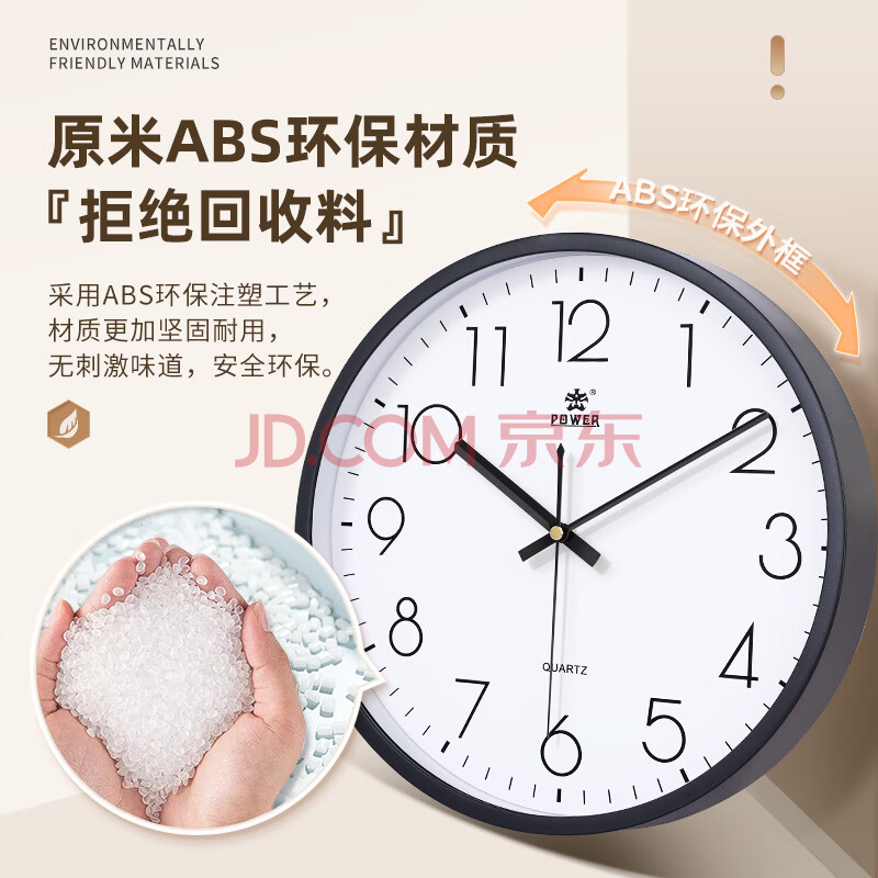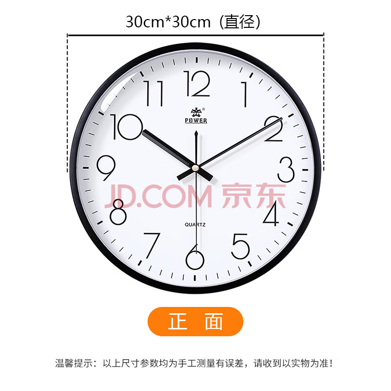 商品相册:POWER霸王挂钟表客厅经典简约挂墙免打孔时钟石英钟30cm黑239518B3第