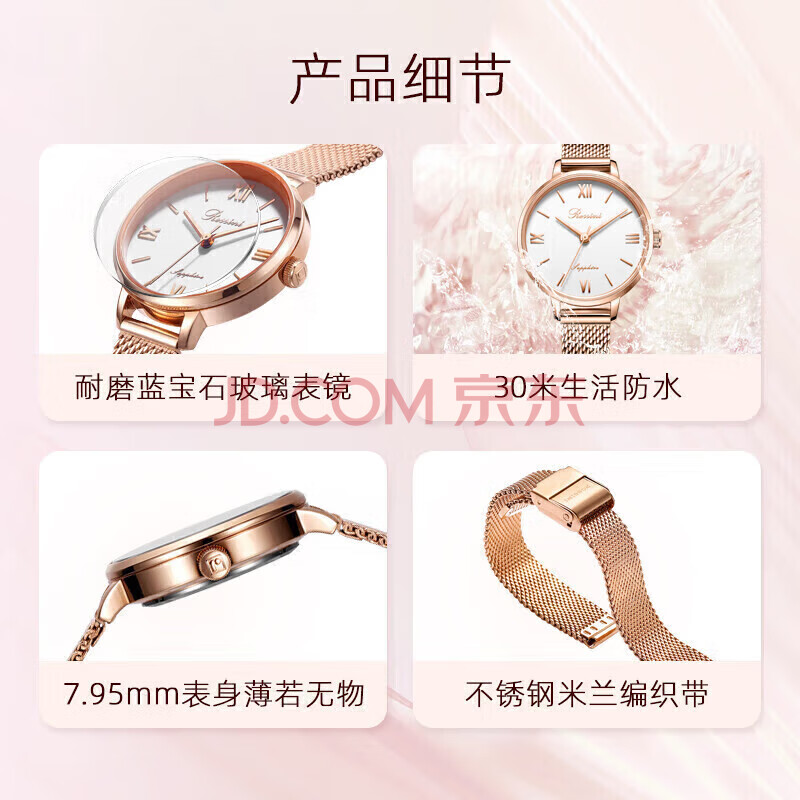 商品相册:罗西尼(ROSSINI)手表女款 生日礼物女士手表石英时尚简约小白盘钢带619920第