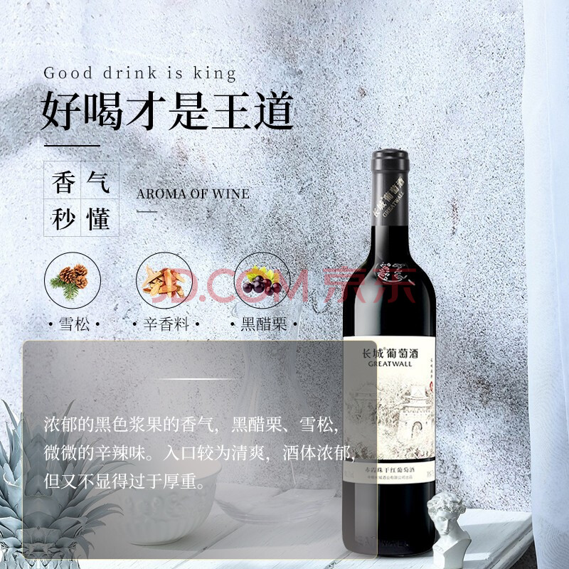 商品相册:长城画廊叁号赤霞珠干红葡萄酒 750ml*6瓶整箱装 国产好酒第