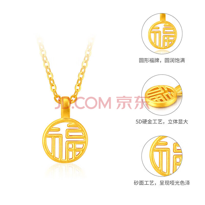 商品相册:梦金园黄金吊坠5D硬金国潮福字圆牌挂坠女款礼物第