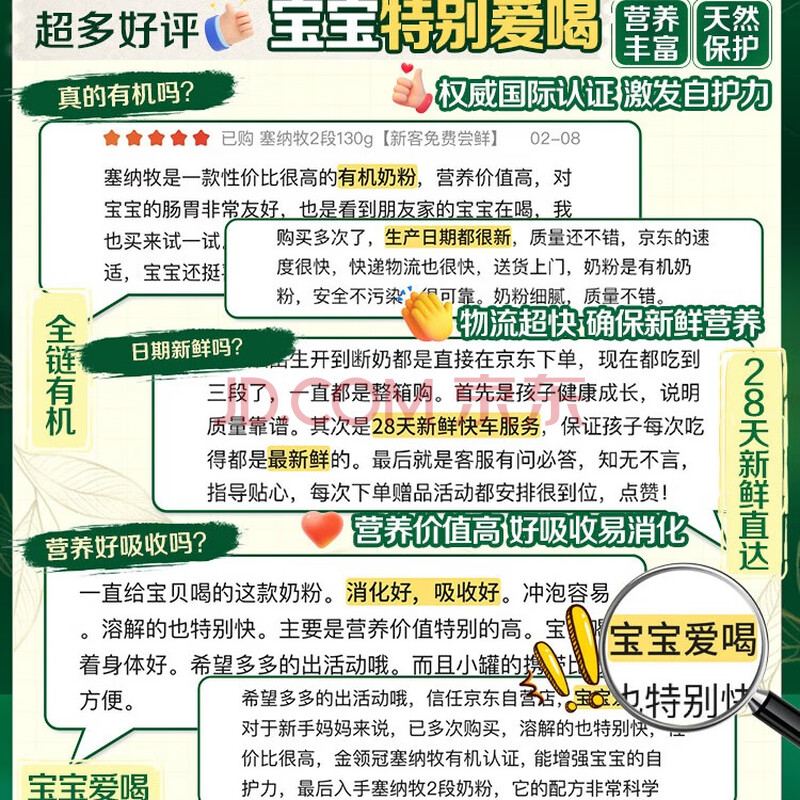 商品相册:伊利金领冠塞纳牧有机A2β-酪蛋白奶粉1段(0-6月)800g*1罐 首款HMO第